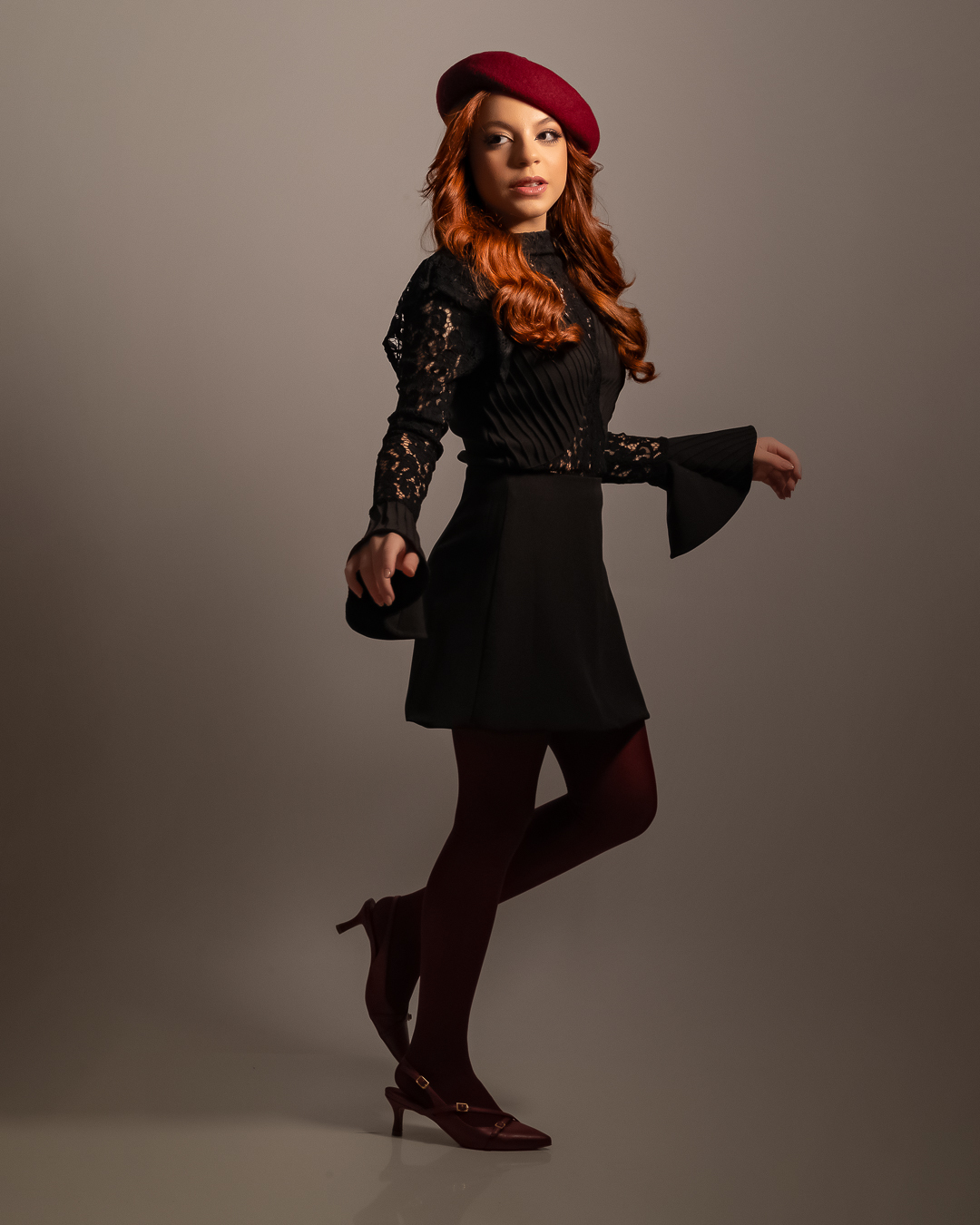 O ensaio fotográfico de Mel Perovano, apresenta uma fusão entre o charme retrô e a estética contemporânea. Inspirado no universo do teatro e da moda vintage, o ensaio destaca-se por uma iluminação que realça a expressividade da modelo.